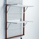 - Стационарен. Такава структура е подредена доста просто. Стенната балконска сушилня има две ламели, които са прикрепени към стената успоредно една на друга, както и метални въжета или пръти (можете свободно да изсушите тежки неща върху тях).