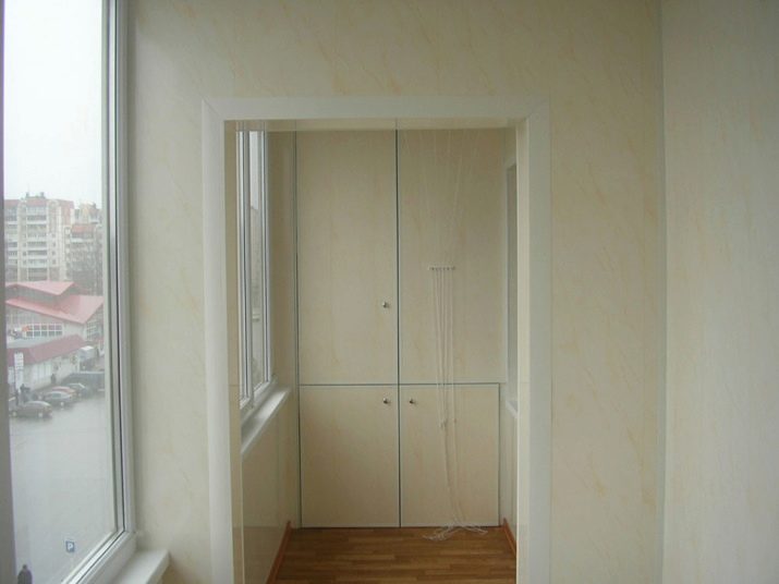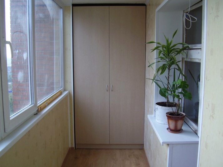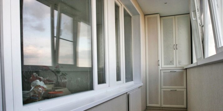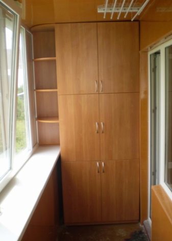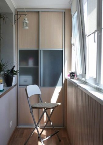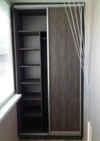 Ако правите гардероб за балкон или лоджия, трябва да вземете предвид особеностите на територията. Ако не е остъклен и имате нужда от шкаф, можете да използвате металната основа като стойки за стена и таван. Такъв шкаф ще служи като място за съхранение на артикули от спортно оборудване. Идеално, ако територията е изолирана и остъклена. Мебелната конструкция може да бъде модулна, плъзгаща се, да има врати “отделение”, много рафтове, чекмеджета.