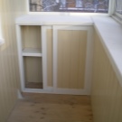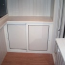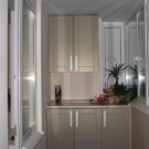 Често малка кухненска площ ви кара да мислите за килер или мебели, в които можете да съхранявате различни консумативи – конфитюри, усуквания, консерви, зърнени храни, кухненски прибори. Дизайнът на лоджията ще реши и тази трудност. Удобните рафтове ще ви позволят да поставите буркани и пакети, кутии и кутии, в които ще се съхранява всичко, от което се нуждае домакинята.