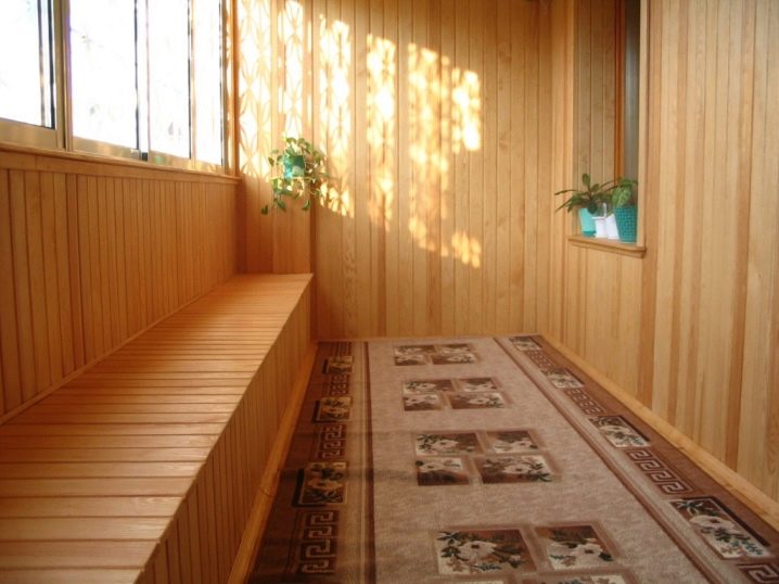 Евро подплатата се използва широко за довършване на лоджии. Имате възможност да създадете лоджийско пространство във всяка цветова схема, да комбинирате цветове. Пластмасовата подплата е доста издръжлива, не се влошава при излагане на влага. Но мнозина са объркани от факта, че материалът не е естествен и е способен да излъчва неприятна миризма, особено в началния етап на работа..