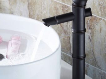 За класическа баня черен кран ще изглежда малко неуместно. Най -хармоничният вариант е, когато светлият нюанс на стените и тавана доминира. Трябва да има много осветление и огледала, както и няколко черни елемента. Черен кран е подходящ и в по -ярка палитра, където се превръща в основен акцент в стаята. Съответно е по -добре да изберете водопровод в същите тъмни цветове. Бронзов кран би бил подходящ в баня в скандинавски или селски стил.