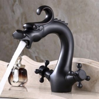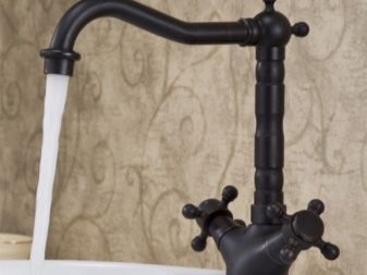 Антични кранове с два лоста се вписват добре за ретро кухня. Тези клапани могат да бъдат изработени от бронз или злато. Тази комбинация е подходяща и за бароков стил. В този случай може да се осигури декоративна стойка или ковани елементи за лостовете. За такива съвременни тенденции в дизайна като хай-тек, таванско помещение, модерен и минимализъм, черен миксер е необходим атрибут..