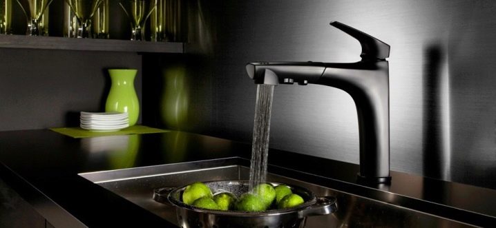 Днес кухнята, подобно на банята, престана да бъде просто функционална стая. Кухнята е не само място за готвене, но и място за приятелски събирания, семейни или романтични събирания. Банята е не само тоалетна, но и малък кът за релаксация и спа процедури. Ето защо е необходимо да се подхожда внимателно към избора на всеки детайл, включително към избора на смесителя. Черният кран във вътрешността на стаята позволява не само визуално да разшири пространството, но и да подчертае благоприятно избрания стил.