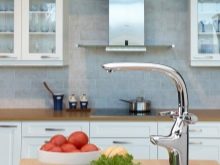 - Мястото за монтаж на крана също играе роля при избора на модела на чучура и зависи от мястото на неговото използване: в банята или в кухнята. Те могат да бъдат монтирани на мивка, вана, мивка или стена. При избора на чучур за тези помещения е необходимо да се вземе предвид тяхното оборудване с водопроводни инсталации и особеностите на тяхната работа. В кухнята обикновено се монтират кранове с въртящи се жалузи, което е изключително необходимо, ако в мивката има две мивки. Височината на чучура ще зависи от дълбочината на мивката, а дължината ще зависи от размера на мивката. Дългият въртящ се чучур е идеален за ваната.