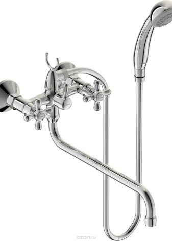 - Размери на помещението, където е инсталиран миксера, както и размерите на ваната, мивката, мивката. Чучурът не трябва да заема много място, но в същото време трябва да осигурява лекота на използване. Ето защо за бани с малка площ се препоръчва закупуване на кранове с дълъг въртящ се чучур, който се използва едновременно както в умивалника, така и във ваната..