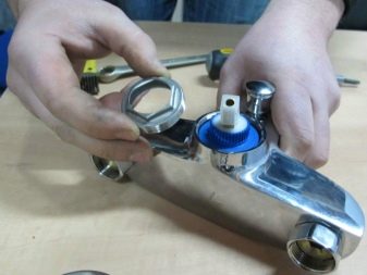 - Развийте фиксиращата гайка в основата на чучура. За тази цел се използва отворен или регулируем ключ..