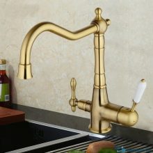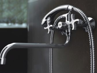 - Класическият миксер с две ръчни колела е идеален за традиционните модели. Удобно е да регулирате температурата с два крана. Вентилите са полуобърнати и имат интересна форма. Класическите модели са разделени на мивка и монтирани на стена версии.