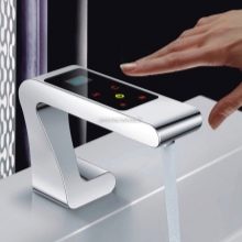 - Още по -удобно е да използвате класически модели с докосване. Смесителите със сензор за докосване могат лесно да се регулират до желания дебит и температурата на водата.