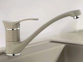 - Някои класически миксери са оборудвани с джойстик. Този вариант не се доставя с маховици. Той има един лост, който трябва да се повдигне нагоре, за да се включи водата, и надолу, за да се изключи. Лесното използване на такива модели се крие във факта, че можете да включите или изключите крана с една ръка..