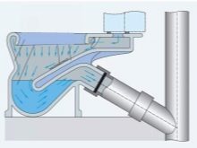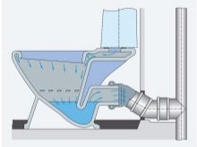 - Кръгов дренаж. При такива конструкции на тоалетни, водата от казанчето тече равномерно по обиколката на купата. Отличителна черта на такива модели е липсата на следи от пръски..