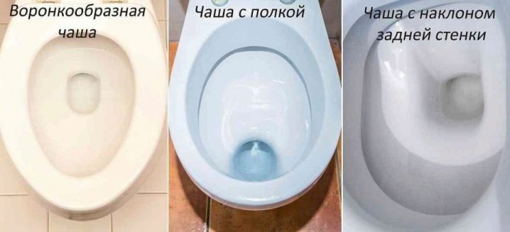 Освен всичко друго, тоалетните чинии са разделени според вида на водоснабдяването. Някои модели имат долна връзка, други имат странична връзка, а трети имат задна. Според местоположението на водното огледало тоалетните чинии са разделени на три типа.
