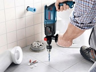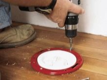 - След това трябва да работим с подготовката на крепежни елементи. За да направите това, преместете тоалетната чиния настрани. Пробийте дупки в пода. Почистете подготвените дупки от отломки. Напълнете ги със силикон и поставете дюбелите.