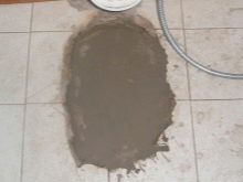 - След това купата се изтегля назад и започва подготовката на подовата настилка.. Необходимо е да се отстранят отломките от повърхността, всички зърна пясък и отломки. За да бъде хватката по -стегната, е необходимо да се грубова основата под купата. Достатъчно е да използвате шкурка. След това подът трябва да бъде обезмаслен и не само с аптечен спирт, но с ацетон или разтворител.