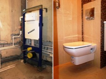 Като се имат предвид шарнирните конструкции на тоалетните чинии, трябва да обърнете внимание на конструктивните характеристики на инсталациите. Първо, те са с различни размери.. Въз основа на това си струва да изберете желаната опция за монтаж по време на закупуването на водопровод. Второ, инсталациите могат да бъдат сложни.. Такива дизайни издържат не само на тоалетната, но и на бидето.. От техническа гледна точка инсталациите са разделени на 2 вида.