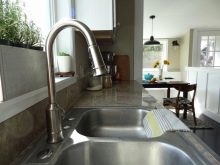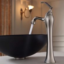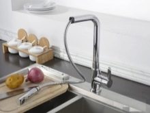 - Къс чучур. Кухненският кран има разнообразни задачи: измиват храна, ръце, съдове и черпят вода под него. За удобство чучурът трябва да е висок и извит, за да могат лесно да се поставят предмети и контейнери под него. А в банята кранът е необходим само за измиване на ръцете и пълнене на горещата вана, така че тя е по -къса и по -малка..