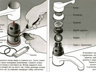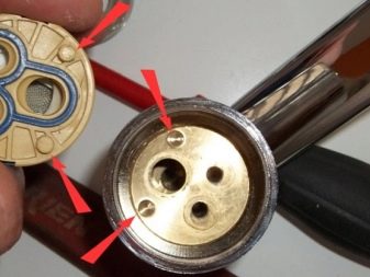 - Механизъм за превключване на патрони за душ. Ексцентрикът се разхлабва и изтича бързо, а отклонението на топката е неразделно с корпуса на смесителя и не може да се поправи.