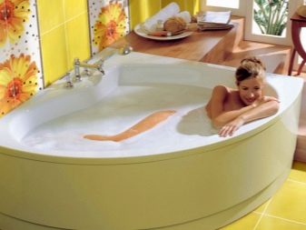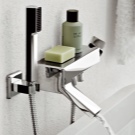 В малки апартаменти, където са монтирани квадратни или полукръгли ъглови вани, за да се спести място, е разумно да се постави миксера в ъгъла. По правило квадратната вана има достатъчно широки ъгли, като рафтове, и това е удобно място за фиксиране на кран..