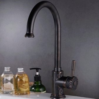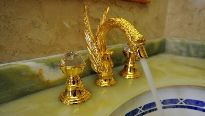 За ретро дизайна са подходящи тежки месингови смесители без гланцово покритие, с два клапана и висок маншон с кръгло сечение. Също така, месинговите и бронзовите смесители в естествения им цвят се показват на интериора, който се стреми към старомоден и естественост (Прованс, кънтри, етнически). За любителите на класическия стил, който е изпълнен с богати материали и аксесоари, водопроводът със златно покритие е идеален. В този случай формата на крана може да бъде всякаква, включително оригиналния каскаден плосък чучур или отливани масивни модели..