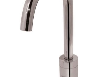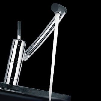 Има по -модерни опции, чийто чучур е в състояние да се върти по оста си, но има смисъл да се направи такова придобиване само ако мивката е отдалечена от стената, например, тя се намира в центъра на стаята..