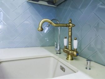 - Поддържайте стил. Ако вашата мивка е близо до модерен стил, тогава кранът също трябва да има модерен вид. И обратно, за ретро стил трябва да изберете оригинална, подправена версия..
