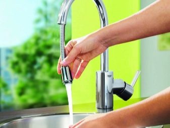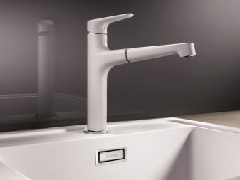 Например, за кухнята е по -логично да закупите висок чучур, докато дълбоката мивка ще поддържа стаята чиста. Отлично решение би било да закупите издърпващ се чучур, особено когато са монтирани няколко купи. Този чучур е представен под формата на допълнителен гъвкав маркуч, който може да се удължи до дължина до 1,2 m.
