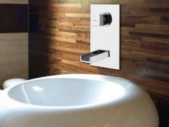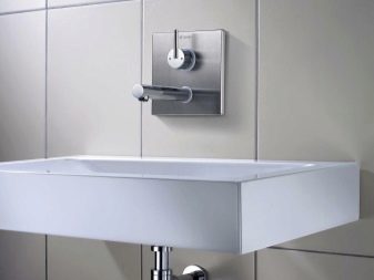 В случай, че се използва вграден кран, тогава на стената ще трябва да се постави контролен панел или превключватели за температура и налягане на водата. С тази инсталация всичко ще изглежда естетически приятно и устройството ще заема малко място. Тази инсталация е подходяща както за кухненски мивки, така и за мивки за баня..