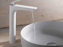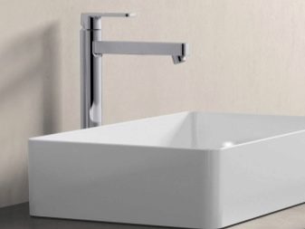 Необходимо е също така да се обърне внимание на факта, че както мивките, така и крановете за тях се избират въз основа на височината и дължината на чучура. Този параметър ще зависи от целта, за която ще се използва мивката. Ако просто трябва да си измиете зъбите и да си измиете ръцете, нисък или среден вид ще е подходящ. За тези, които предпочитат да мият главата или лапите на животното в този контейнер, се препоръчва да обърнат внимание на високите кранове. Освен това, когато давате предпочитание на един или друг вид чучур, не забравяйте да вземете предвид ъгъла на падане на струята..
