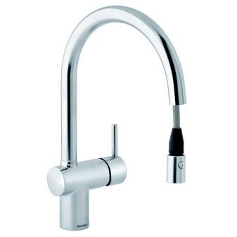 - Дъга. Чучурът е разположен отстрани на основата, има въртящ се механизъм, дръжката за включване на водата е отгоре, има дюза-аератор. Смесителните чучури и дръжките се предлагат в няколко цвята. Кухненският вариант е с разтегателен душ. Моделите са защитени с CoolTech покритие против изгаряне.