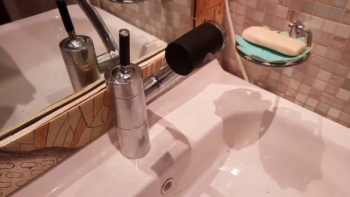 - За умивалник. Смесителят за умивалник е малък и може да се прикрепи към мивката.