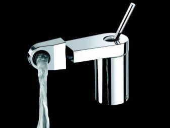 - Безплатно. Твърд кран за умивалник, дръжката е много малка, за да се вижда по -малко отстрани.