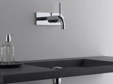 Всъщност вградената версия е същият еднолистов кран, само с възможност за скрит монтаж. В този случай окабеляването и механизмите са маскирани в стената, а за работа лост с чучур и поливане може да остане на очи.