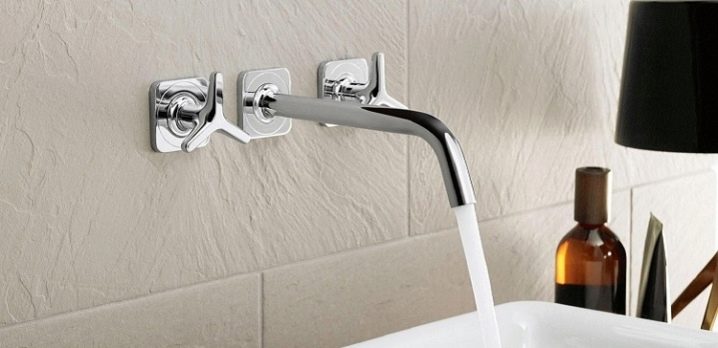 Обичайните монтирани на стена устройства трябва да се отнасят към бюджетни модели. Най-често те се предлагат с глави с два клапана. Модернизираните версии на стенни смесители се различават от обичайните кранове в механизма за регулиране на потока вода. В продажба можете да намерите полуоборотни клапани и джойстик с един лост. Последният тип лост се счита за най -издръжлив, тъй като вътрешната му структура предполага наличието на един патрон, което свежда до минимум появата на различни повреди..