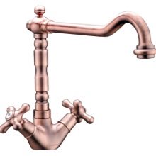 За потребители, които предпочитат високотехнологичния стил, кранът Kitchen 5604032-2509 е перфектен., оборудвани с уникален гъвкав чучур. Това прави миксера още по -удобен, защото можете независимо да насочите потока вода към желаното място. Благодарение на лоста за управление можете да регулирате температурния параметър на водата. Корпусът на миксера също е изработен от месинг, но е покрит със слой от специален лак, който ви позволява да поддържате външния вид на продукта за дълъг период на работа..