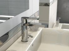 Смесителят модел Praktic 59A5860 е идеален за умивалник, който има два клапана, както и дивертор от керамика, който може да се завърти на 90 градуса. За повишаване на безопасността продуктът включва специален заключващ патрон, също изработен от керамика. Това е необичайно дълъг чучур, модел.