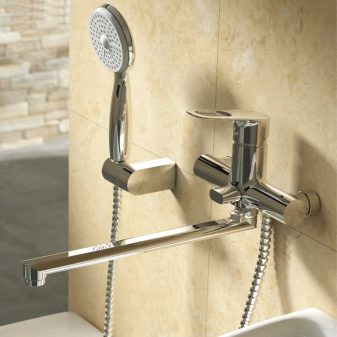 - За баня. Смесителите за баня имат най -широката гама от модели от цялата гама. Сред асортимента на компанията има опции за всеки интериорен дизайн – както с къса отливка, така и с дълго въртене. Конфигурацията на чучура може да бъде S-, J-, G-образна. Производителят може да оборудва продукти с въртящи се челюсти със стандартен превключвател за вана-душ и превключвател за вана-душ, вграден в тялото. Душовите глави, включени в доставката, могат да имат няколко режима на подаване на вода – 1, 3 или 5.