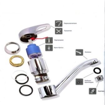 В зависимост от аксесоарите, смесителите могат да имат функция за регулиране на температурата на водата или да работят без нея. Съществува и вид оборудване, което се характеризира с транслационно връщане или ротационен принцип на работа.. Този водопроводен аксесоар има следния състав: