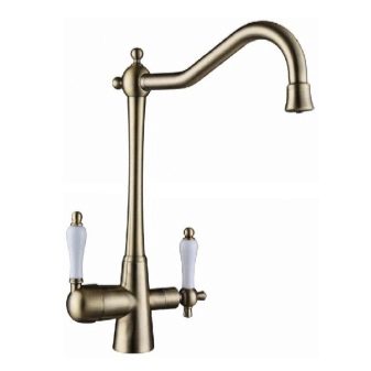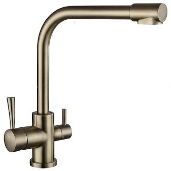 Смесител Vincent 31744-3 Бронз предназначени вече за кухнята. Тази конструкция има бронзово боядисано покритие и 35 мм патрон, състоящ се от три керамични диска. Основният конструктивен материал е санитарен месинг, използва се специална стабилизационна плоча и комплекс от ускорен монтаж.