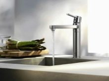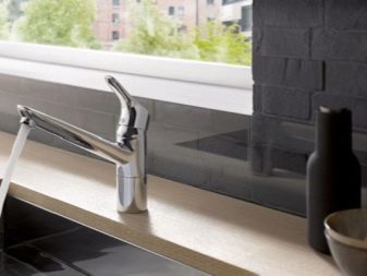 На фона на плоска стена смесителят за душ Kaiser изглежда – не се страхувайте от думата – брилянтно. Но ако поставите апарата от същата марка в кухнята, на фона на тъмна стена близо до голям прозорец, резултатът също ще зарадва собствениците. Дизайнерите в Германия са създали продукт, който майсторски се вписва дори в такава сложна дизайнерска среда. Но в тази мивка е монтирано право, подобно на кула устройство за подаване на вода. Лаконичността и строгостта са изразени възможно най -пълно..
