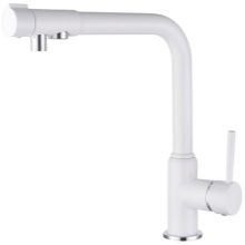 Смесителят е инсталиран вертикално; комплектът за доставка включва маркуч и аератор. Долният вентил не е осигурен, продуктът е боядисан в бяло. Гаранцията на марката е 5 години, филтърът не може да бъде свързан.