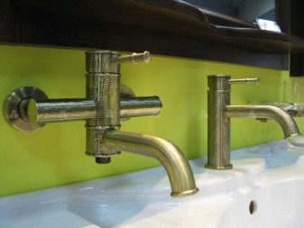 Снимката показва хубаво устройство с чифт клапани, предназначени само за банята и боядисани в лъскав хром. Този кран е предназначен за подаване на вода в мивката. Той се справя блестящо със задачата си, като същевременно подчертава своята почтеност и тържествено настроение с външния си вид..