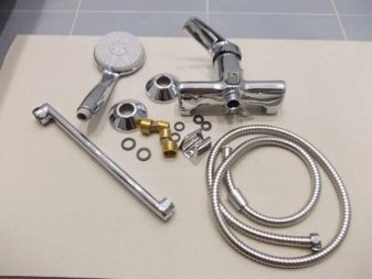 - Струва си да извършите инсталацията от душ -главата. Първо се монтира уплътнение между корпуса на смесителя и връзката на маркуча. След това трябва да свържете маркуча и да поставите лейка в него.
