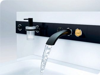 В допълнение, много често има опция, при която в състава на такава структура се въвежда гандър с различна дължина. Необходимо е едно устройство да обслужва както мивката, така и банята. В същото време държавният стандарт не установява ограничение за неговата дължина. Основното е, че това не пречи на нормалната работа на продукта. За да може смесителят да бъде монтиран на стена, трябва да се използват ексцентрици. В допълнение, те също така позволяват да бъде подравнен и обезопасен, ако се клати. Много е важно те да са с високо качество, тъй като целият процес на инсталиране започва с тях..
