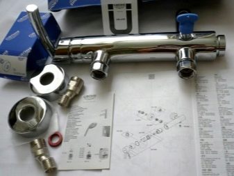 В допълнение, много често има опция, при която в състава на такава структура се въвежда гандър с различна дължина. Необходимо е едно устройство да обслужва както мивката, така и банята. В същото време държавният стандарт не установява ограничение за неговата дължина. Основното е, че това не пречи на нормалната работа на продукта. За да може смесителят да бъде монтиран на стена, трябва да се използват ексцентрици. В допълнение, те също така позволяват да бъде подравнен и обезопасен, ако се клати. Много е важно те да са с високо качество, тъй като целият процес на инсталиране започва с тях..