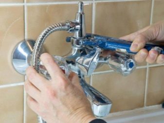 Преди да инсталирате нов кран, е необходимо да демонтирате стария водопровод. Най -лесният начин да премахнете крана за вана е, че той може да бъде свален изцяло, като развиете двете съединителни гайки, които го свързват към тръбите за топла и студена вода. Единствената трудност може да възникне в случай на полимерни тръбопроводи. Развиването на гайките ще отнеме много усилия, така че трябва да се държите за подводните тръби, за да избегнете усукване и счупване. Можете да държите тръбите с газов или затягащ ключ за металните закрепващи уши, запоени в тях..
