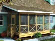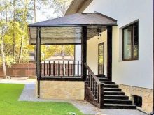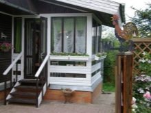 Отворена веранда. Този дизайн предполага наличието на навес, леки странични релси и парапети. Броят на стъпалата може да варира в зависимост от височината, на която се намира входа на къщата.