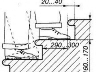 Броят и размерите на стъпките. Оптималната височина на стъпалото е 17-20 см, дълбочината е 35-40 см.