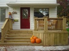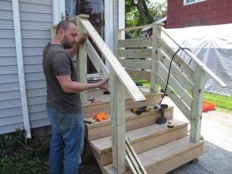 Когато броят на стъпалата на верандата е повече от три, е разумно решение да инсталирате парапет. Логично е това да се направи на последния етап след изграждането на горната платформа..