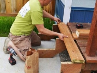 Ъгълът на наклон на стъпалата. За да се избегнат случаи на натрупване на вода върху тях, е необходимо да се спазва наклон от 1-3 градуса по време на монтажа в посока, противоположна на къщата..