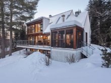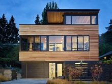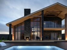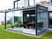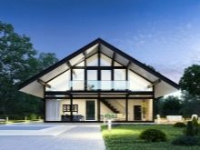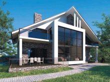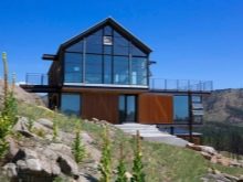 В класическата версия панорамното остъкляване заема около 2/3 от външната стена. Придава уважение към всяка, дори и най -простата къща с лаконична форма и малки размери..