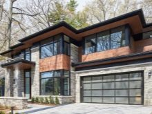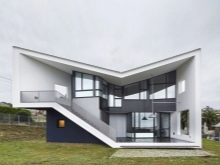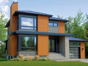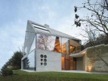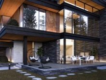 В комбинация с наклонена форма на покрив, панорамните прозорци изглеждат особено необичайни.. Красив проект на модерна двуетажна къща може да включва наличието на прозорци в 2 реда.